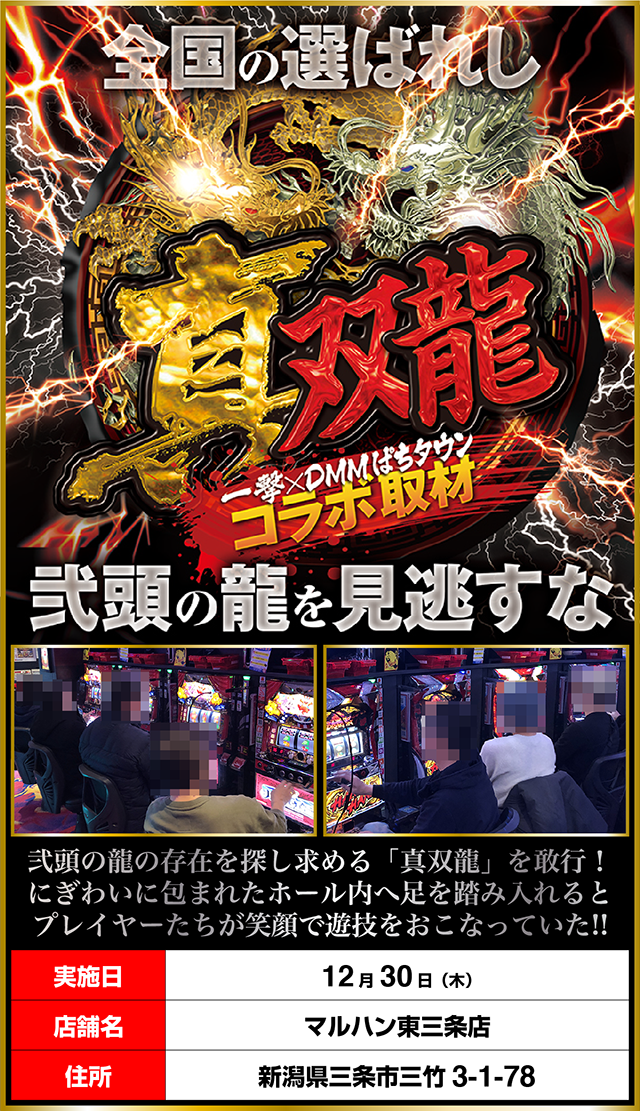「マルハン東三条店」にて、「真双龍」を敢行した。