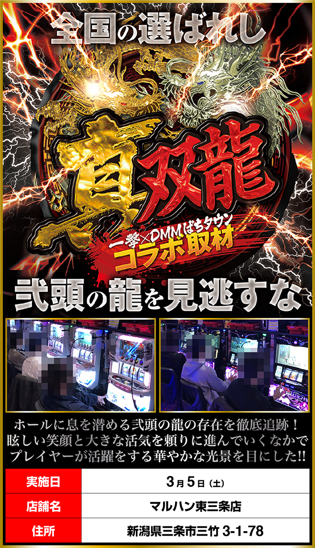 「真双龍」をおこなうべく、むかったさきは「マルハン東三条店」。