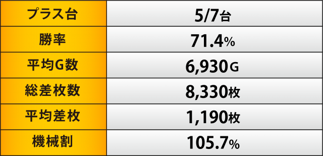 最後は『バーサスリヴァイズ』。プラスが1台だったものの、732番台が+1,339枚を残し安定した結果に。
