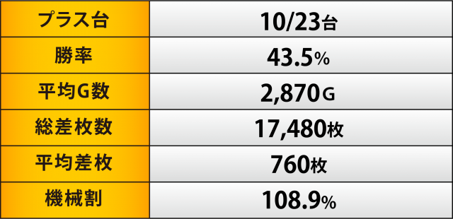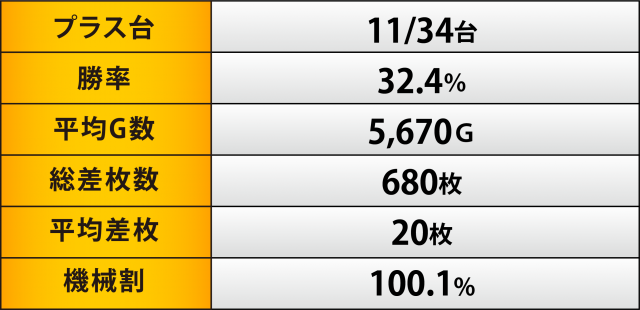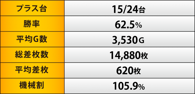 一方『沖ドキ!DUO-30』は24台トータルで+1万4千枚超&+3千枚台と+2千枚台が1台ずつ、『チバリヨ-30』は+5千枚台×1・+4千枚台×2・+3千枚台×1・+2千枚台×3を含む23台の合計で+1万7千枚突破という成績を残し、30パイマシンの中で最優秀は『チバリヨ』という結果に。