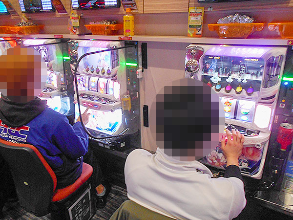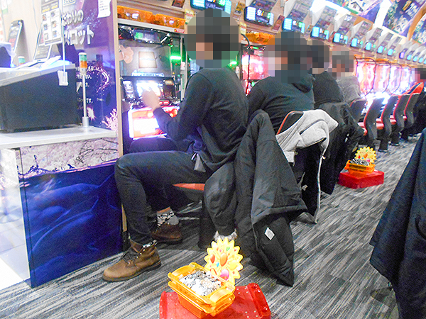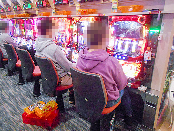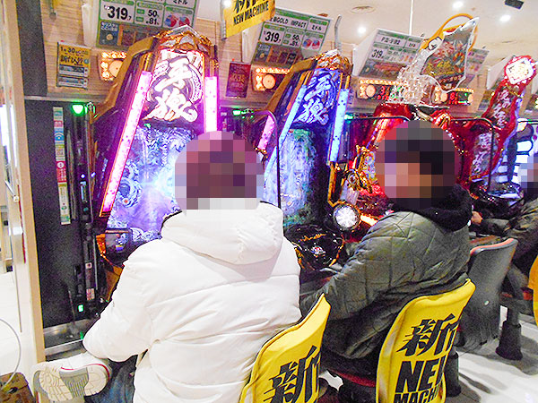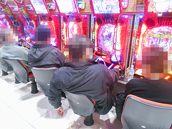 機種構成が魅力的な500円/89枚パチスロを見ると、ほぼ満席となるほどの支持を得ていた。