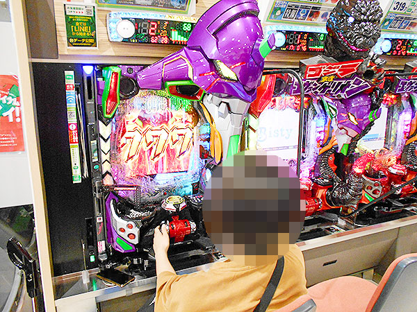 15時ごろの200円/89玉パチンコでは「Pデビルマン疾風迅雷 129ver.」や「新世紀エヴァンゲリオン〜未来への咆哮〜」、「P神・天才バカボン〜甘神SPEC〜」が好評。プレイヤーの活躍をあちこちで目にしている。