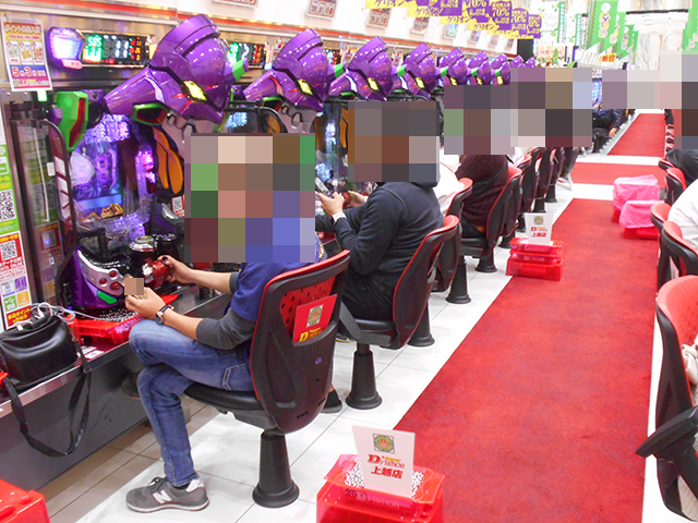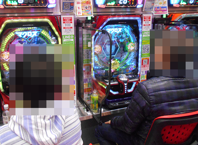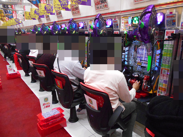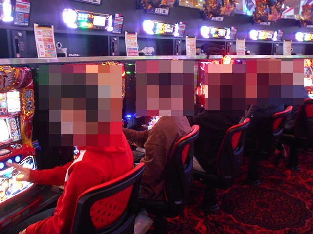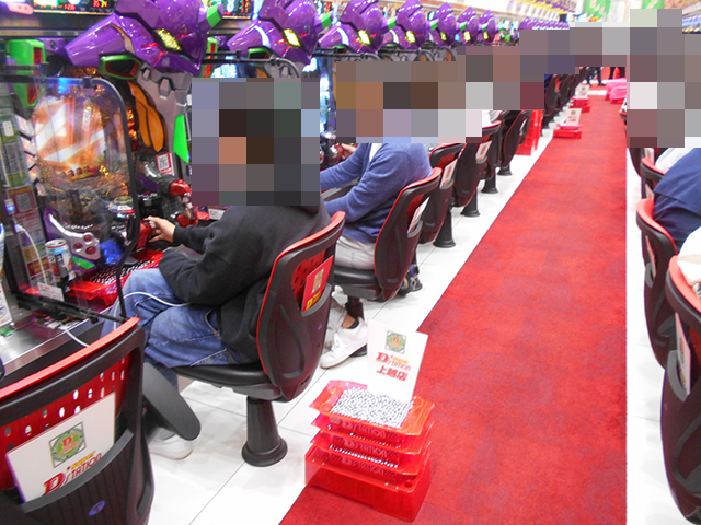 遊技をおこなっていた13名のなかには、3箱の持ち玉を使っている姿もあった。