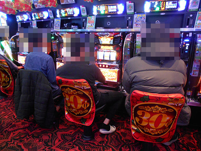 「マイジャグラーⅤ」などのジャグラーシリーズも人気があり、あちこちがにぎやかなムード!!