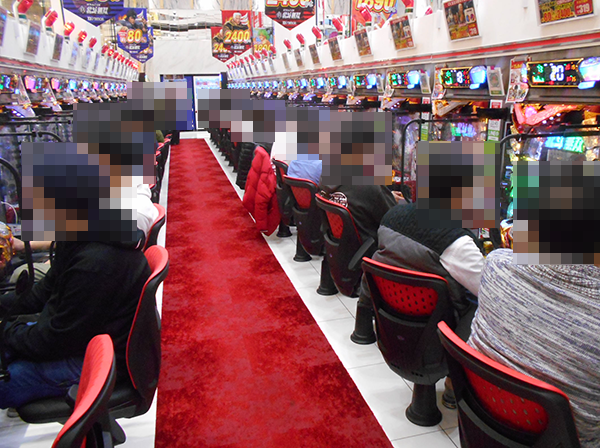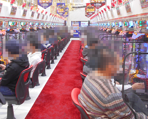シマ内にはイキイキと遊技をおこなっているプレイヤーが並び、大にぎわいといった状況。