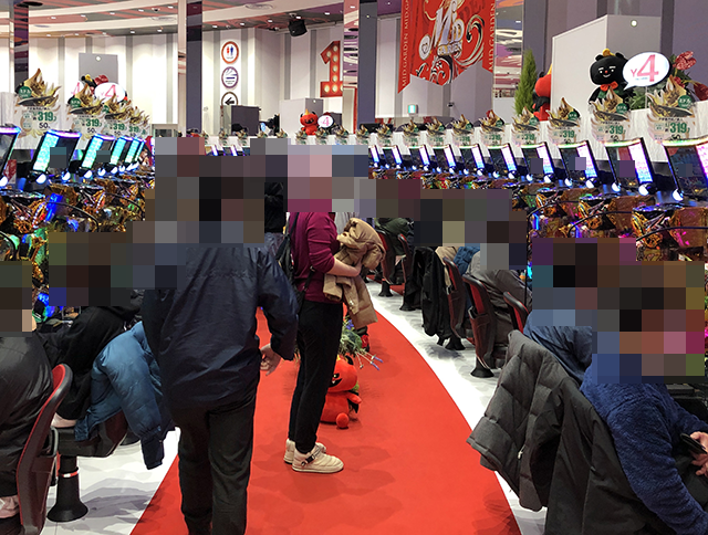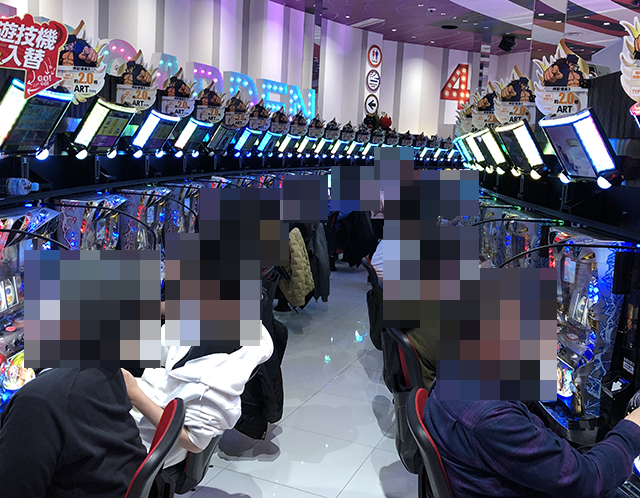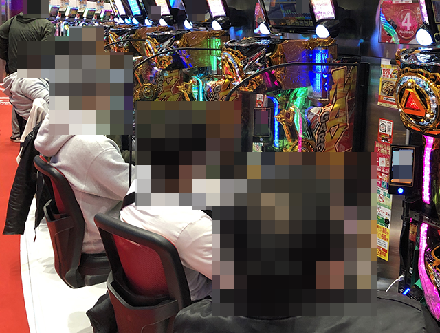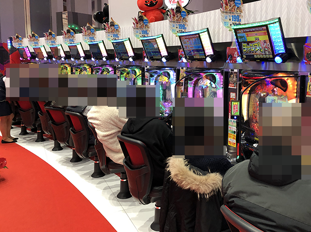 イキイキと遊技をおこなっているプレイヤーがズラリとならんでおり、それぞれが機種の魅力を味わえているといった印象。