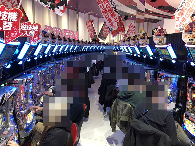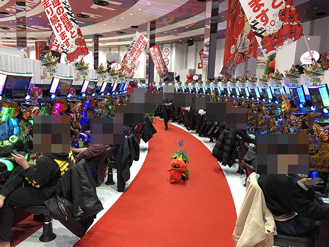 随所が活況となっていた「ミッド・ガーデン堀之内店」。どこに目をむけても笑顔が広がっているホールであった。