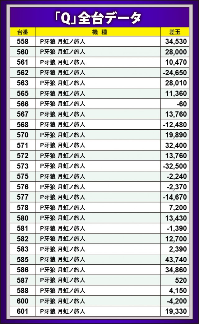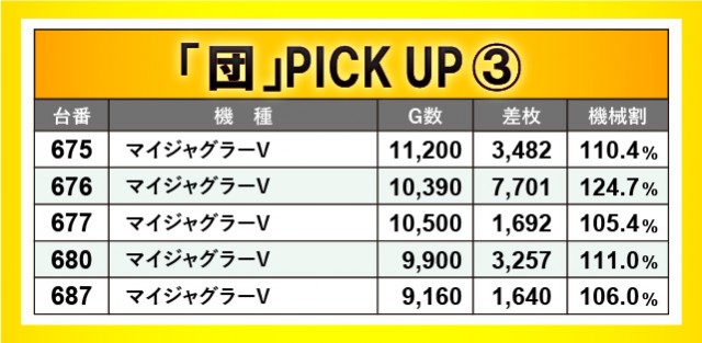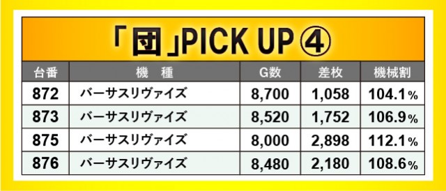 AT機が熱気を噴出する一方で、『マイジャグラーV』では万回転到達台が3台も確認できた。675番台は11,200Gも遊技されており、早々に手ごたえを掴んでぶん回されていたのだと分かる。また『バーサスリヴァイズ』は全台プラス差枚を記録しており、回転数を伴っていることから、事前に狙いを付けられていた一角かもしれない。ノーマル機の活躍も目覚ましく、ファンの期待にしっかりと応えてくれたことも分かるだろう。