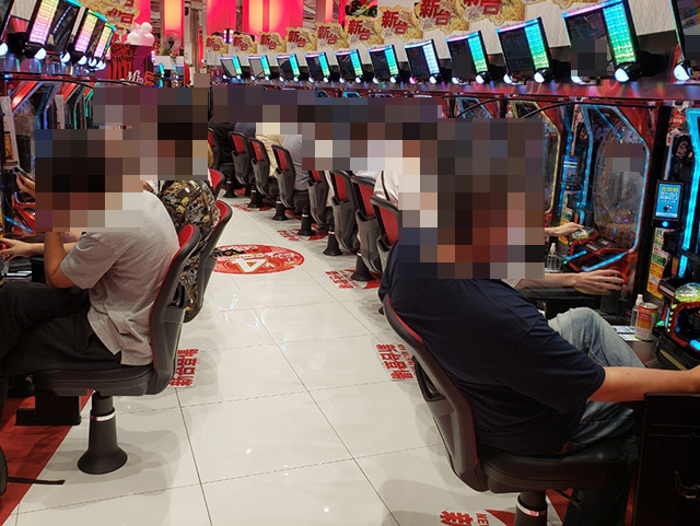 パチンコのみならず、パチスロにも華やかなシーンが多かった「ミッド・ガーデン堀之内店」。活気が大きく、随所に笑顔が広がっていた。