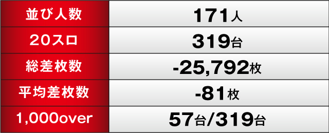 総差枚数は-25,792枚、1,000枚オーバー57台/319台と、残念ながら負けとなってしまったが、店内各所にチャンスが散りばめられていた可能性は高そうだ。とくにスマスロや6.5号機、「押忍!番長ZERO」などの人気機種は稼働率も高く、結果もしっかり出ていたことからも、しっかり狙いを絞っていけば勝ちにつながるかもしれない。次回開催時は要注目だ!