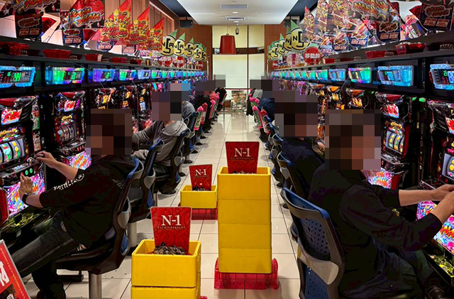 複数台が、1箱以上の持ち玉を使って遊技を続けていた。