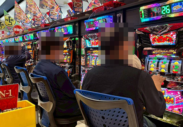 交互に並ぶ「スマスロモンキーターンV」と「スマスロ モンスターハンターライズ」は両機種ともに満席!