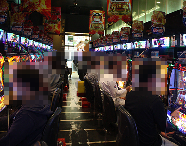 「プレミアムハナハナ‐30」や「ツインドラゴンハナハナ‐30」など、さまざまな機種が支持されていた「エヌワン豊栄店」。店内には「男の華道」と呼ぶにふさわしい魅力的な光景が広がっていた。