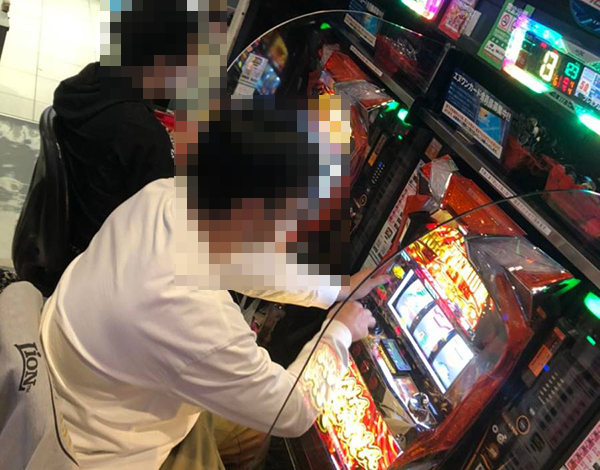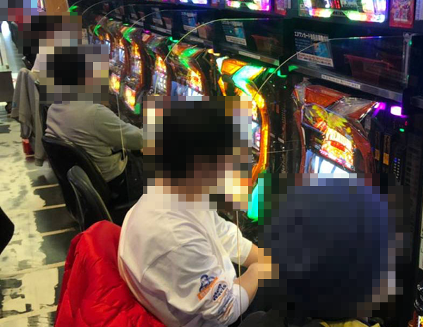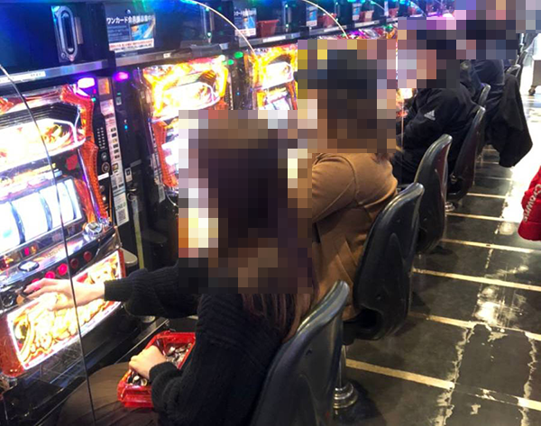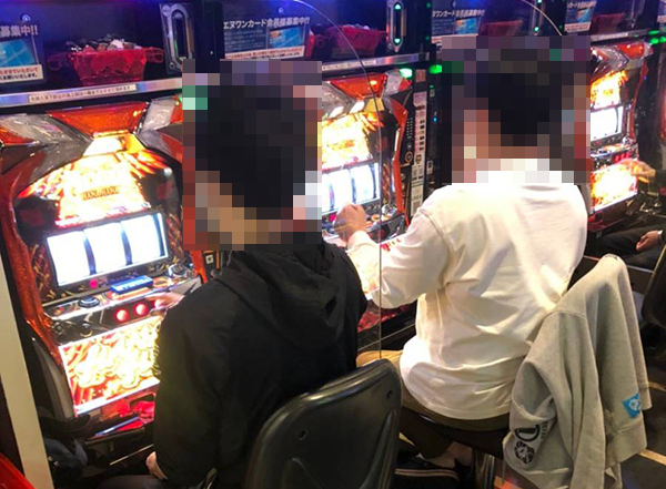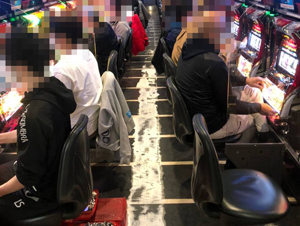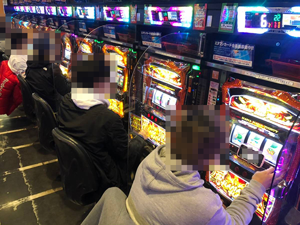 7台が並んでいる「プレミアムハナハナ-30」では、4名が遊技をおこなっていた。