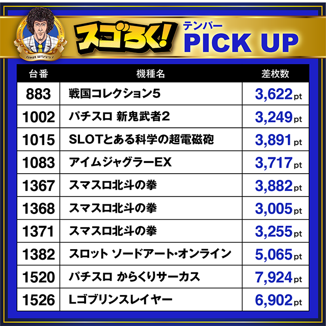 人気を集めていた「スマスロ北斗の拳」から選んだ3台は、どれも3,000pt以上!