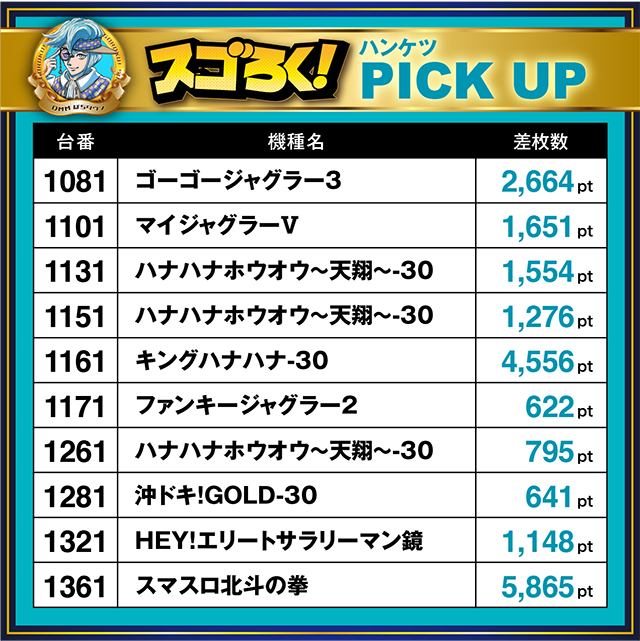 5,000pt以上や4,000pt以上など、エクセレントな成績を残した台をみつけだすことができて、大満足さ!!