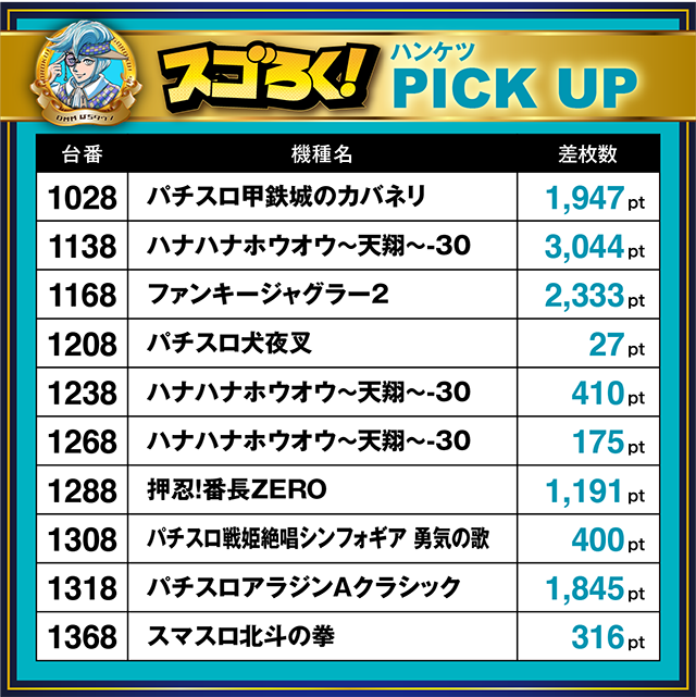 1028番台の「パチスロ甲鉄城のカバネリ」や1288番台の「押忍!番長ZERO」でも、プレイヤーたちは機種のおもしろさを味わえていたらしく、2台ともプラス!