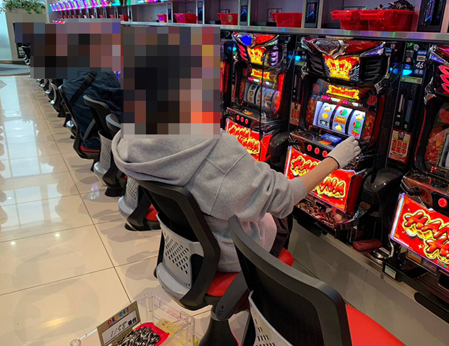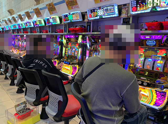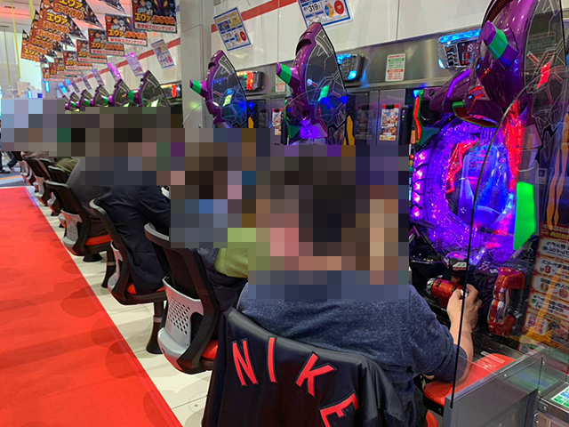 「パチスロ甲鉄城のカバネリ」には4名が座っており、どのプレイヤーも1箱以上の持ち玉で遊技中。それぞれが機種の性能を引き出していることがうかがえた。