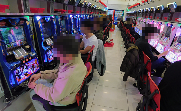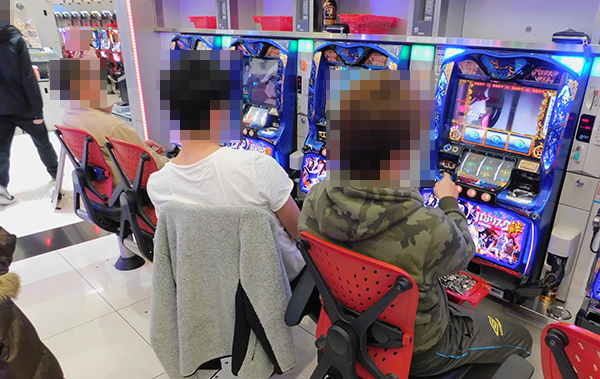さまざまな機種が活気づいているなかで、「バジリスク~甲賀忍法帖~絆」に笑顔のプレイヤーを目撃。