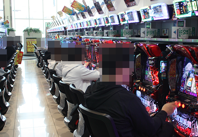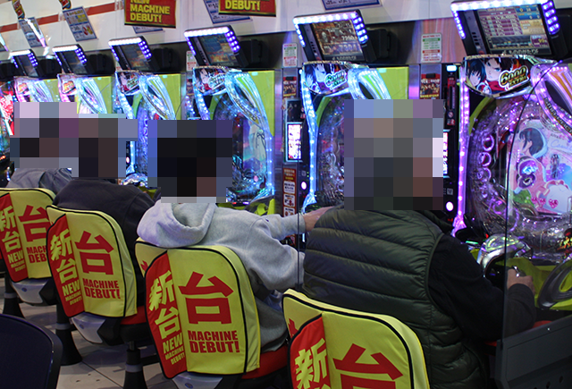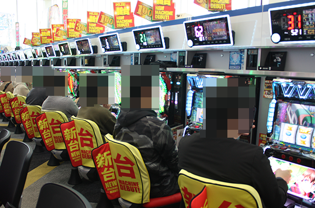 パチンコも新台に対する支持は厚く、最新機種の「eフィーバーもののがたり」がフル稼働。