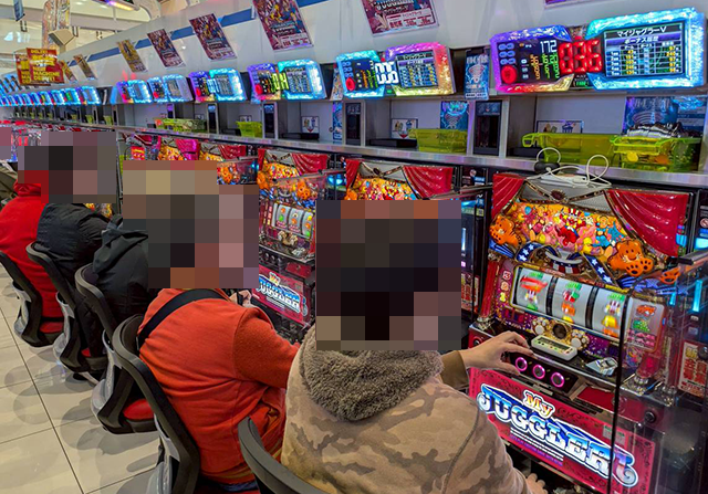 「スマスロ モンスターハンターライズ」や「いざ!番長」にも遊技を満喫しているような姿があり、にぎわいが感じられた。