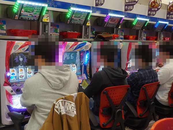 パチスロコーナーの様子をうかがうと、大勢のプレイヤーが笑みを浮かべながら遊技をおこなっていた。
