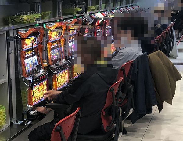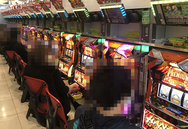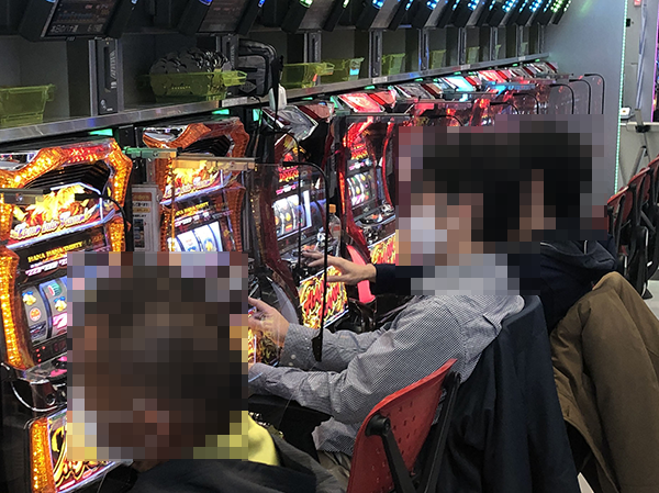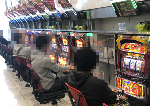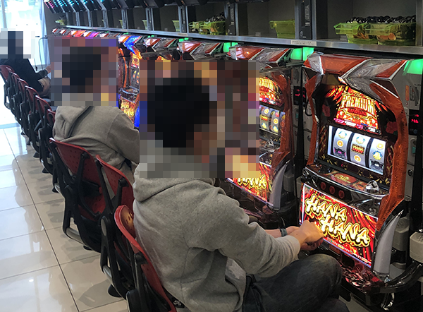 15時を過ぎた頃の「プレミアムハナハナ-30」では、7名のプレイヤーが遊技をおこなっていた。