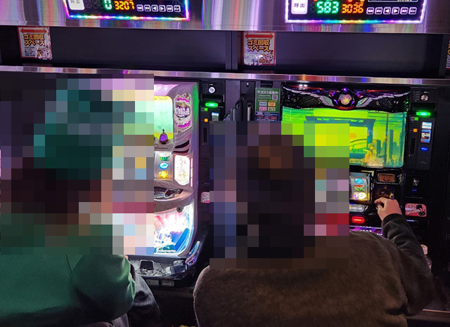 舞台となる「ディーズクラブ河渡」では、プレイヤーたちが笑顔で遊技をおこなっていた。