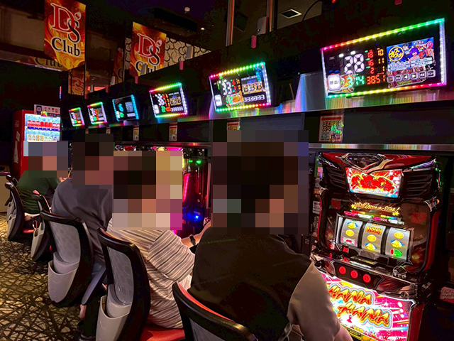 パチスロコーナーをまわり、プレイヤーたちの活躍をみにいこう。