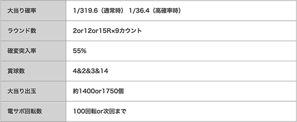 確変突入率55%、最大獲得出玉約1750個のシンプルな確変ループタイプ。