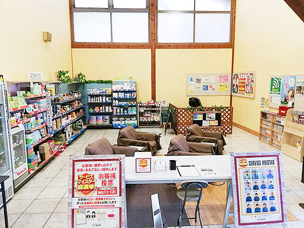同店のレストスペースは広々として実に開放的。漫画やマッサージチェアなども用意されており、有意義な休憩時間を送ることができるだろう。