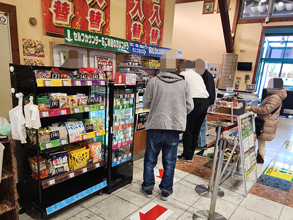 景品コーナーにはお菓子・インスタント食品・酒類など多彩なアイテムが揃っており、プレイヤーたちの目を引いていた。
