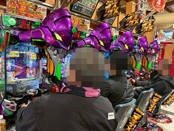 15時ごろの4.386円パチンコを見てみると「新世紀エヴァンゲリオン〜未来への咆哮〜」や「e 新世紀エヴァンゲリオン 〜はじまりの記憶〜」、「ぱちんこ シン・エヴァンゲリオン Type レイ」が活況。プレイヤーの満足そうな様子から、充実した時間を過ごしていたことがうかがえる。