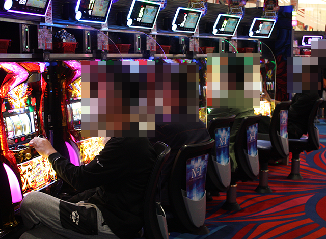 笑顔で遊技をおこなう姿は、ホール全体でみても存在感を放っていた。