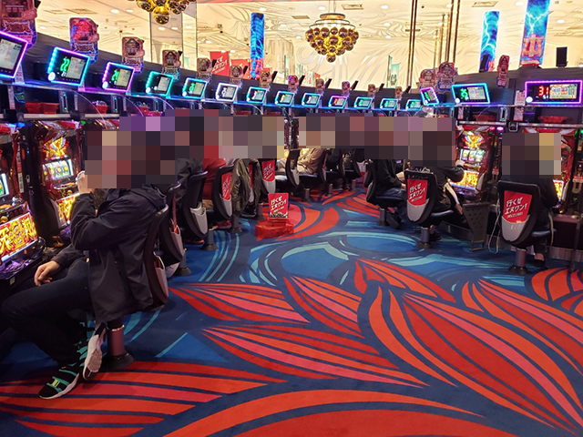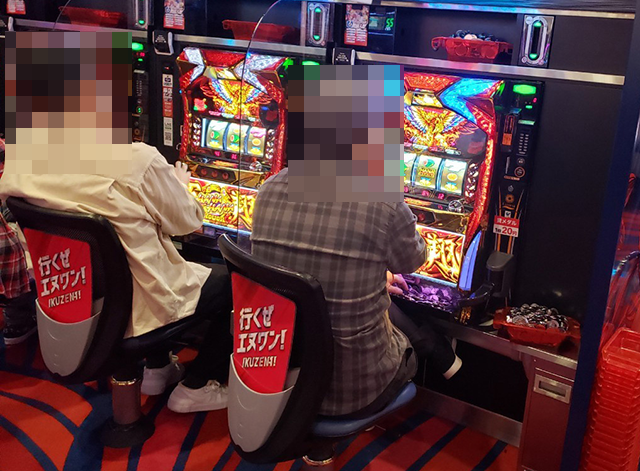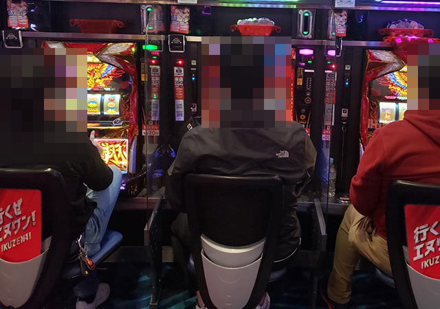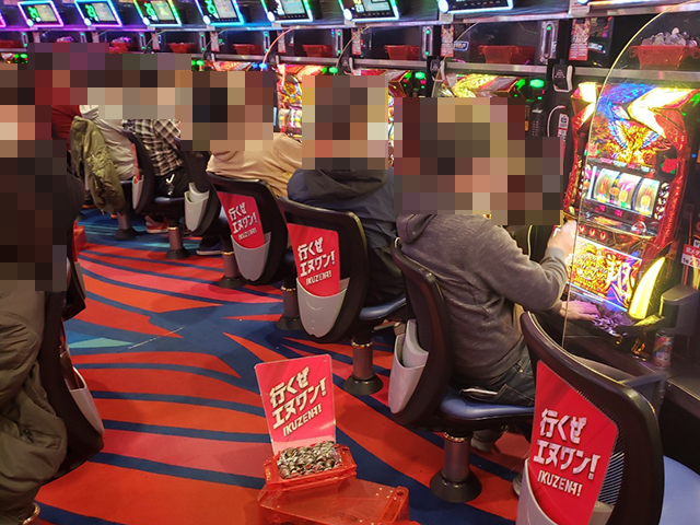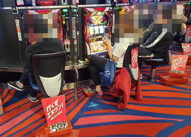 うれしそうに遊技をおこなっている姿が3台、4台と続き、大きな活気が感じられる状況であった。