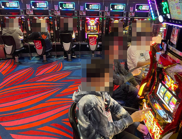 パチンコとパチスロの両方で遊技をおこなっており、どちらのシマもにぎわっていた。
