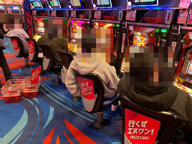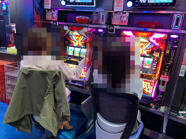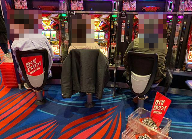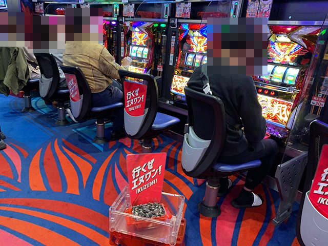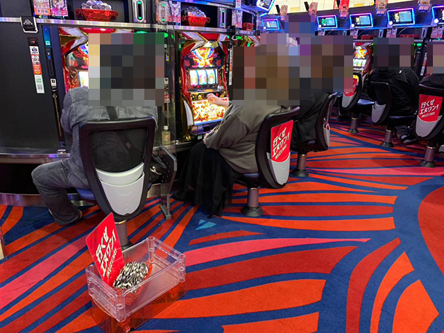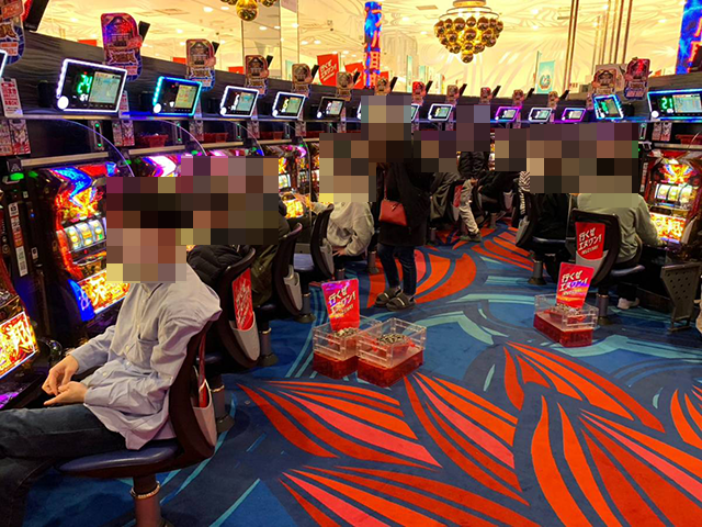 14時過ぎのホールには、多くのプレイヤーが集まっており、パチンコとパチスロの両方がにぎわっていた。