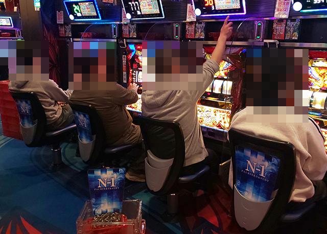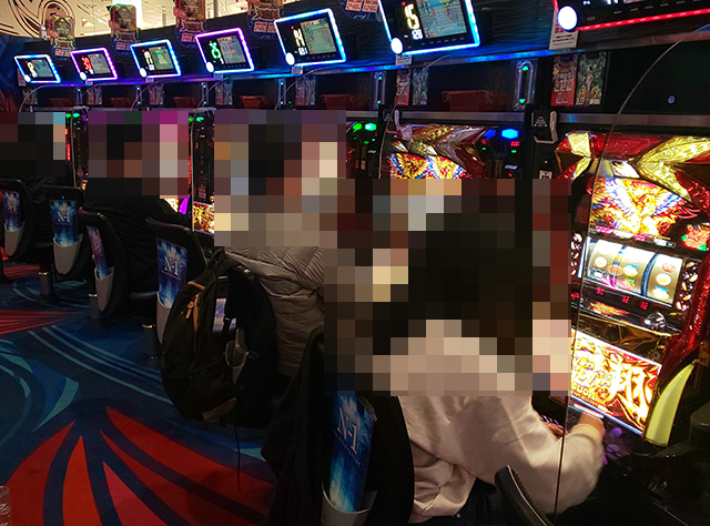 たくさんのプレイヤーが集まる店内は、パチンコとパチスロのどちらも活気づいていた。