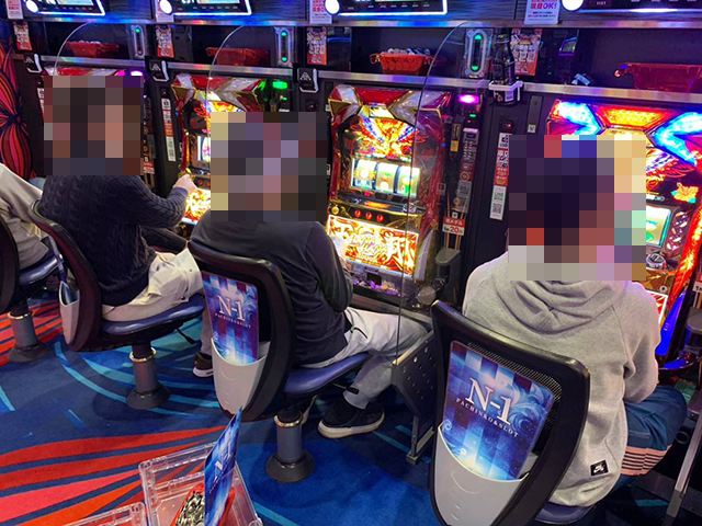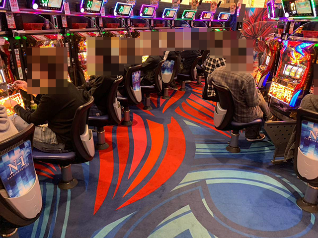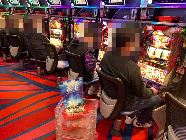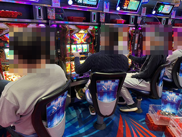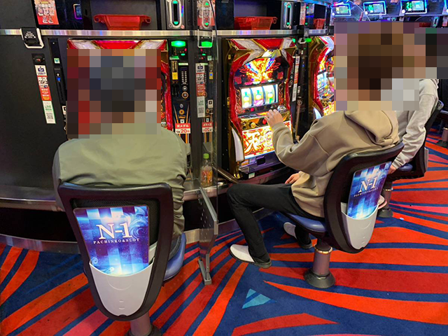 理想的ともいえる展開で遊技をおこなっている姿も確認。にぎやかなパチスロのなかでも、抜群の存在感を放っていた。