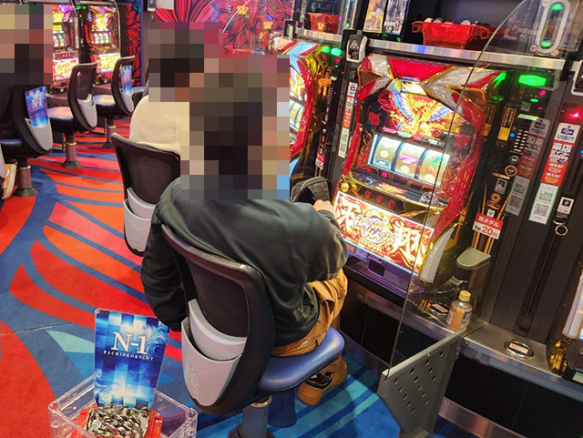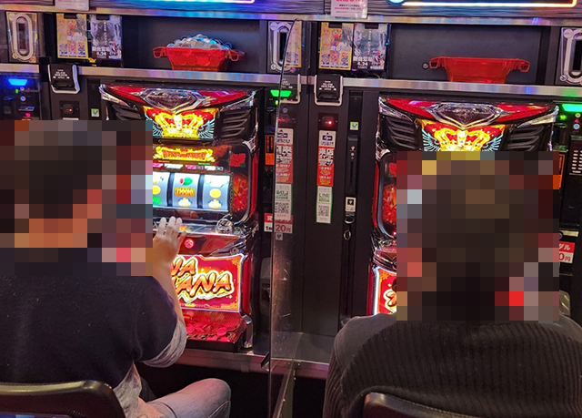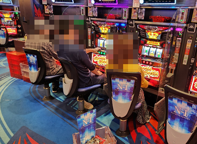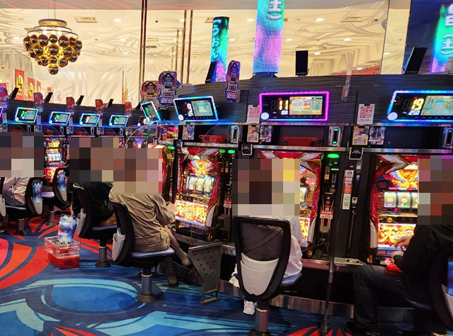 20円パチスロには4機種、5円パチスロには2機種の沖スロが設置されているホールだ。