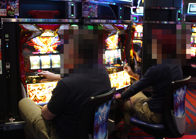 パチスロコーナーでは、沖スロが盛況となっており、たくさんの笑顔が広がっていた。