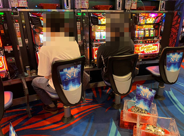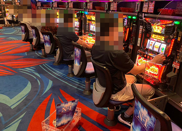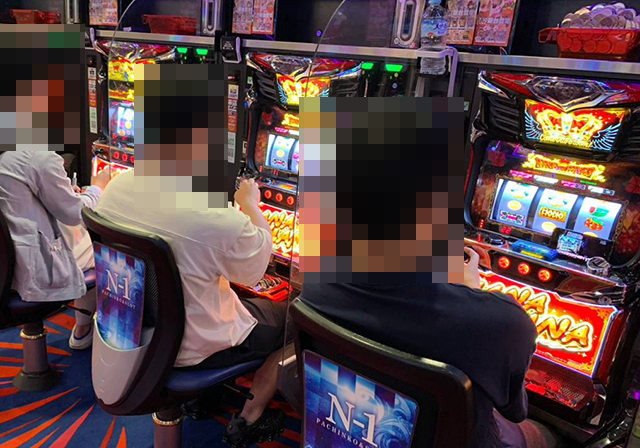晴れやかな表情で遊技をおこなっている姿は、にぎやかなパチスロのなかで存在感を放っていた。