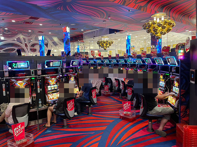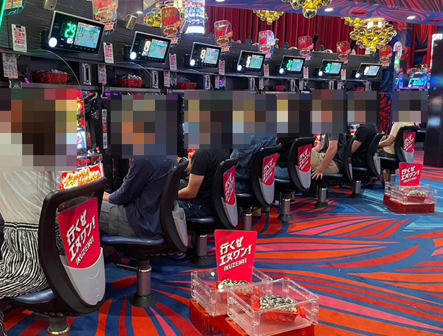 ハナハナシリーズは30台以上が設置されており、取材時は多くのプレイヤーに支持されていた。