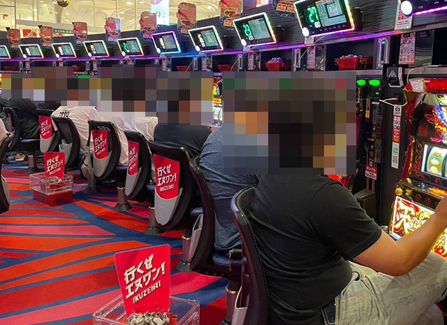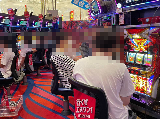 うれしそうに遊技をおこなっているプレイヤーは、「ハナハナホウオウ~天翔~-30」でも目撃。機種の魅力を堪能しているためか、表情が晴れやかであったことも覚えている。
