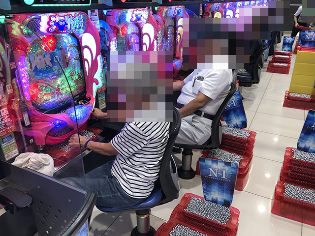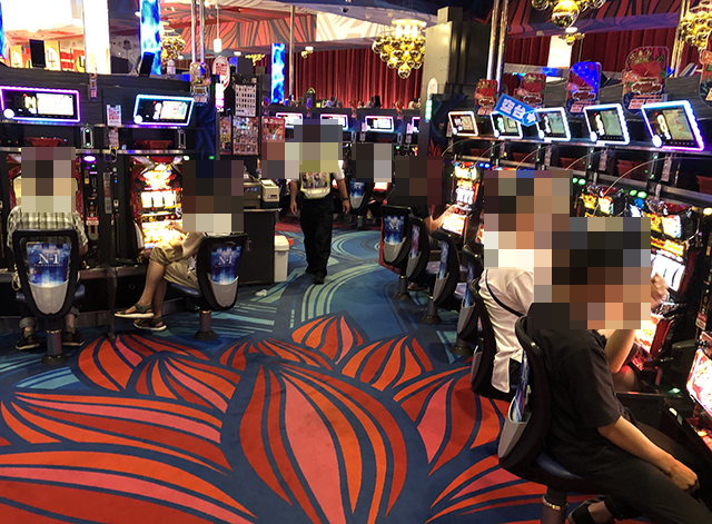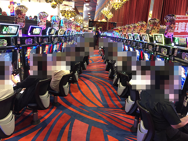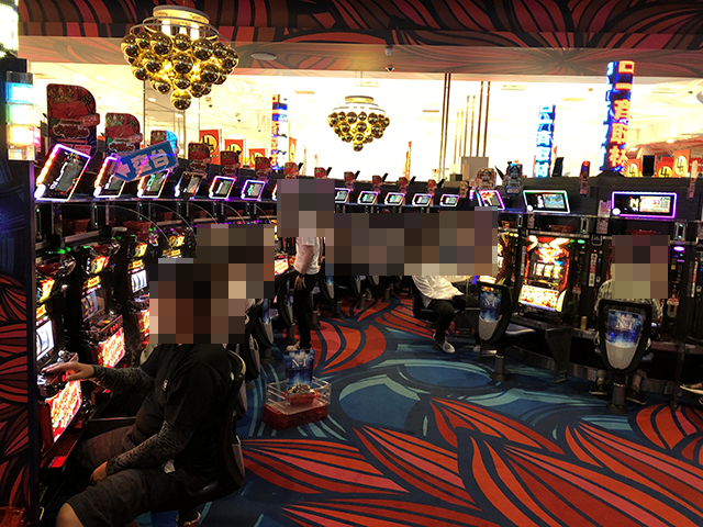 うれしそうに遊技をおこなっているプレイヤーが目立ち、シマ内は華やかなムード。
