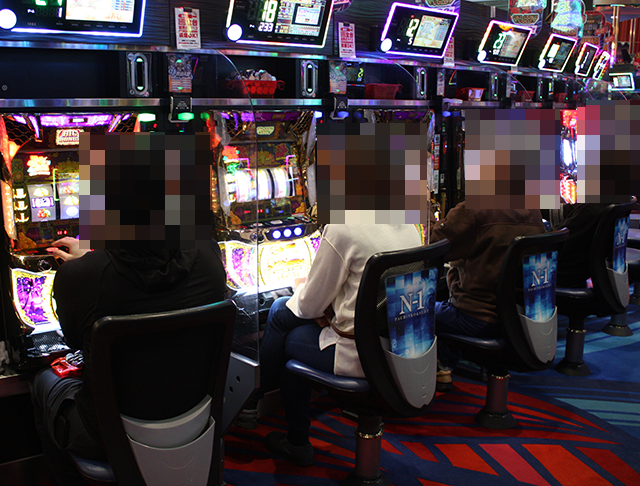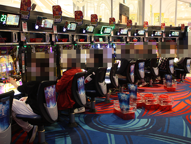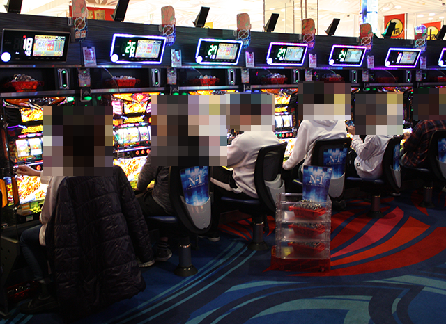 5箱や4箱の持ち玉を使って遊技をおこなっているプレイヤーを確認。
