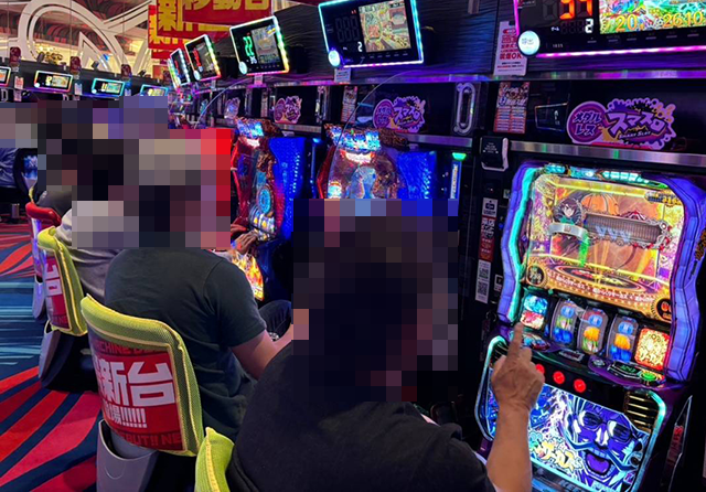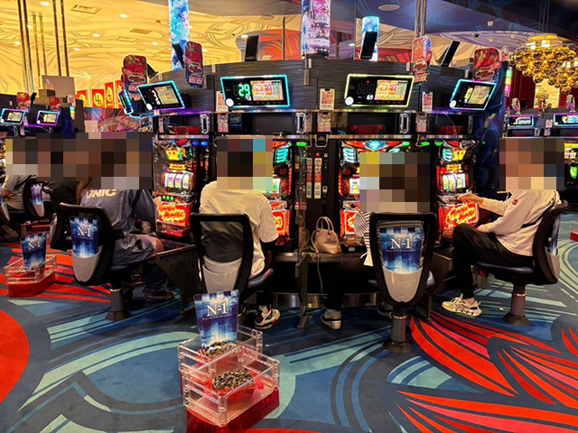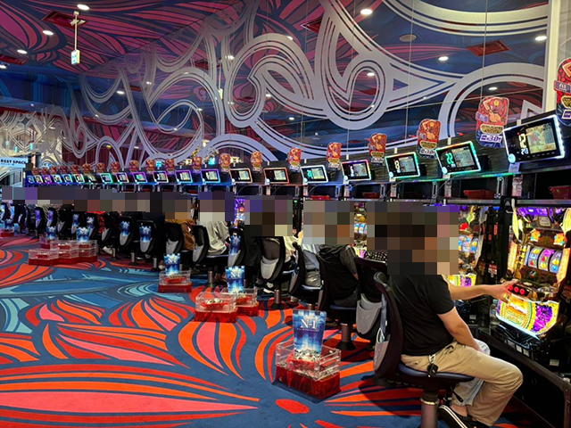沖スロの盛り上がりが大きく、あちこちに華やかな光景が広がっていた。