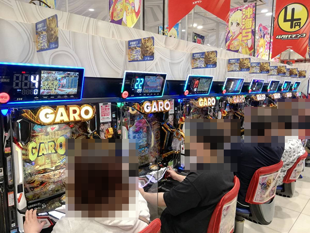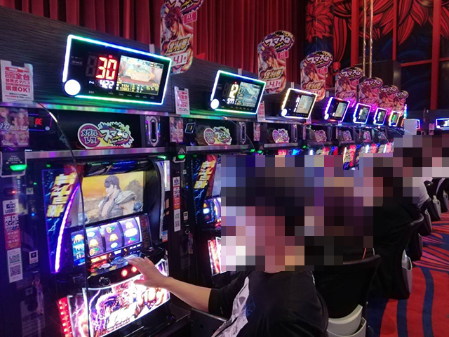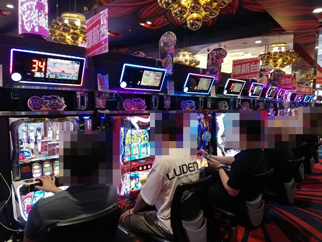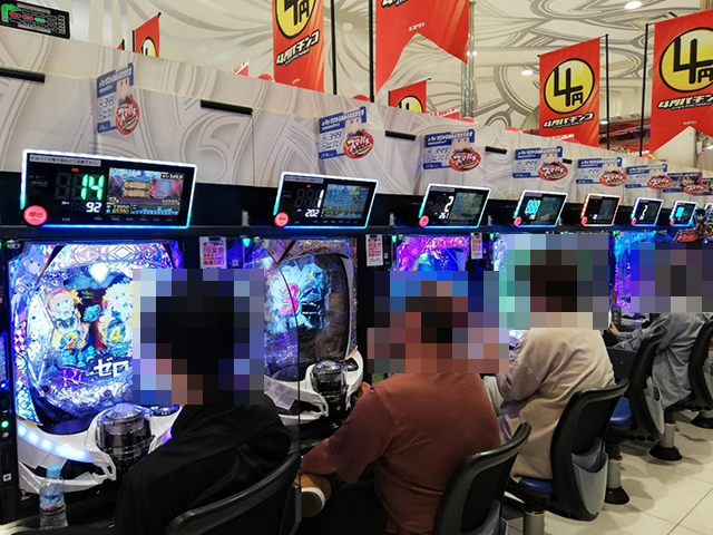活気づいている店内をまわっていくと、パチンコとパチスロの両方でパワフルな光景がみられた。