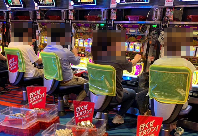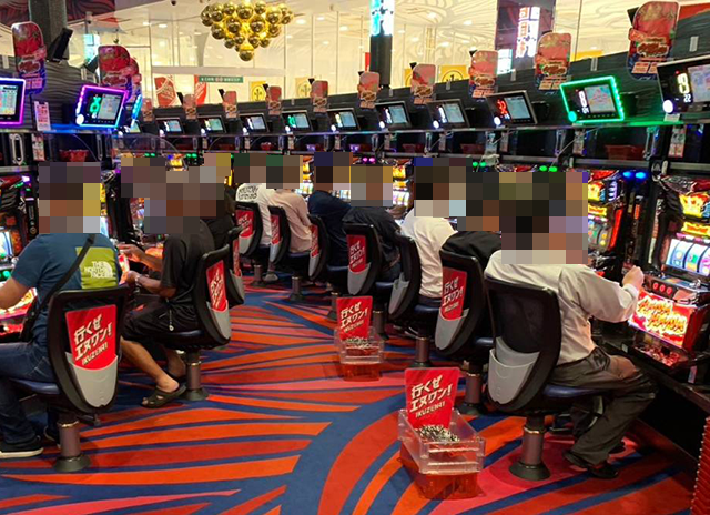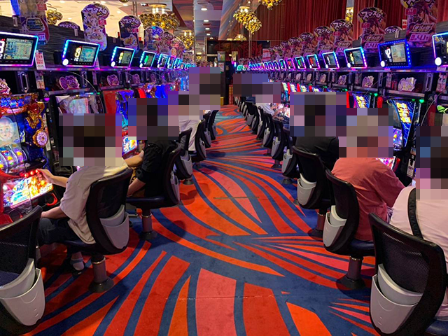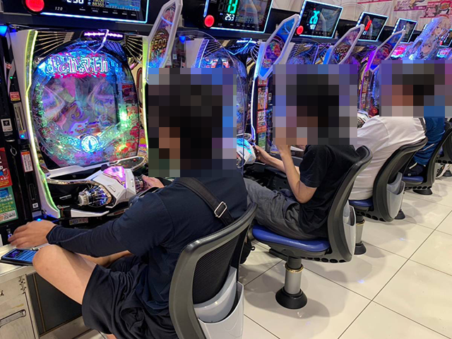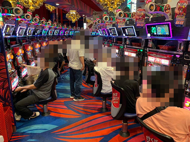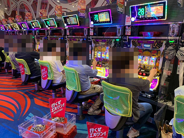 多くの機種に、笑顔で遊技をおこなっている姿があった。
