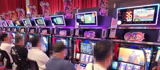 『L聖闘士星矢 海皇覚醒 CUSTOM EDITION』『L戦国乙女4 戦乱に閃く炯眼の軍師』『スマスロ北斗の拳』『スマスロモンキーターンⅤ』『スマスロ真・北斗無双』といった台の頭上には華々しい表示が輝いていた。